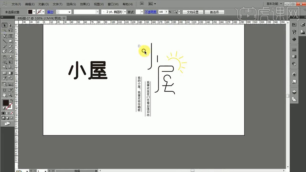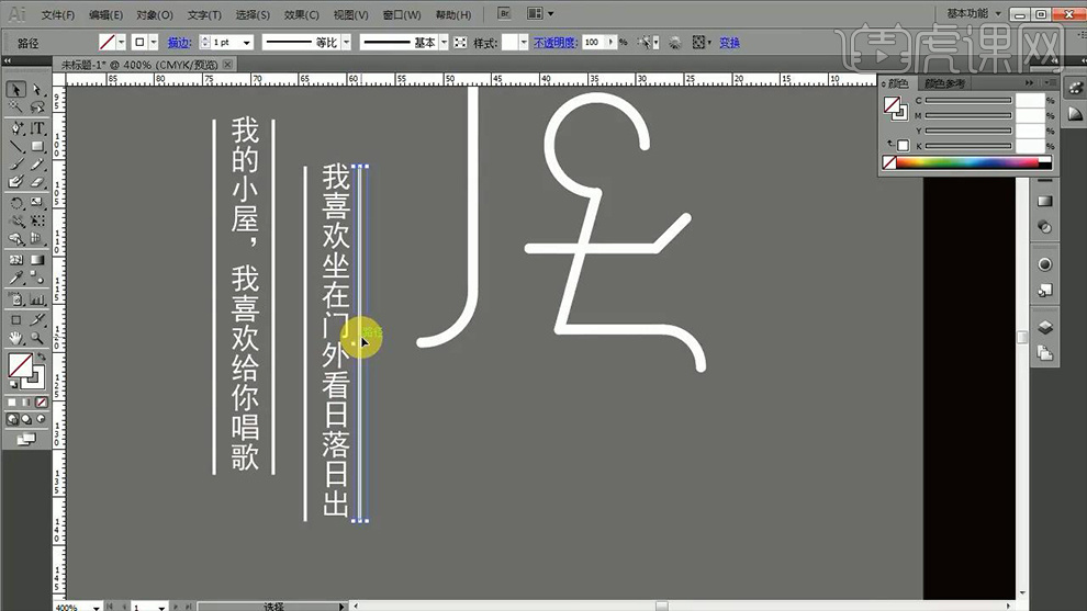 2、【矩形东西-绘制取文字等大的外形】【填充灰色-下移一层】然后调整【文字的颜色】,同样【曲线东西-绘制摆布两侧的笔画】。打开【AI-输入小屋-字体黑体】按住【ALT拖动复制一层备用】。9、【删除-屋】的‘口’绘制【圆角矩形】取代,15、【曲排文字东西】然后正在‘左侧’输入‘歌词’【曲线东西-绘制曲线,