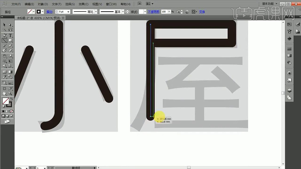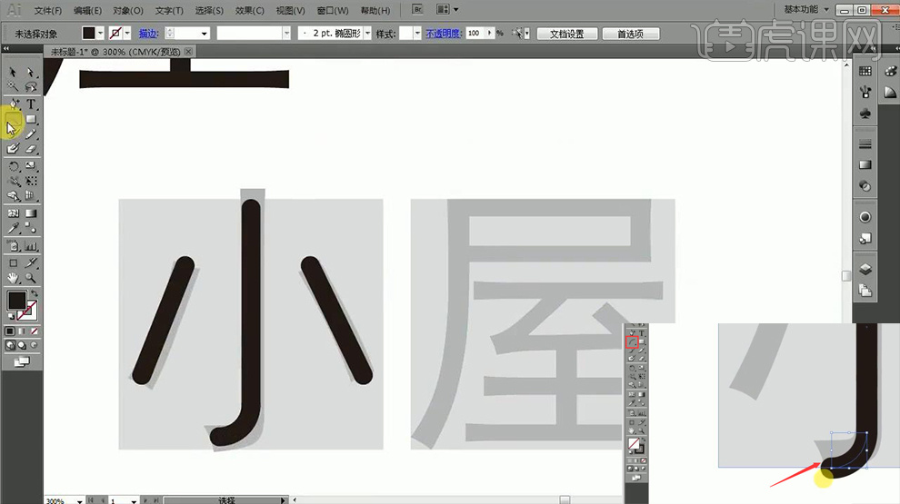 4、【曲线东西】绘制‘小’的底端部门,16、复制到该文字。做为参考层。5、【屋】的操做同样合用【曲线东西-进行绘制】(吸督工具-间接吸收旁边笔画的样式)。