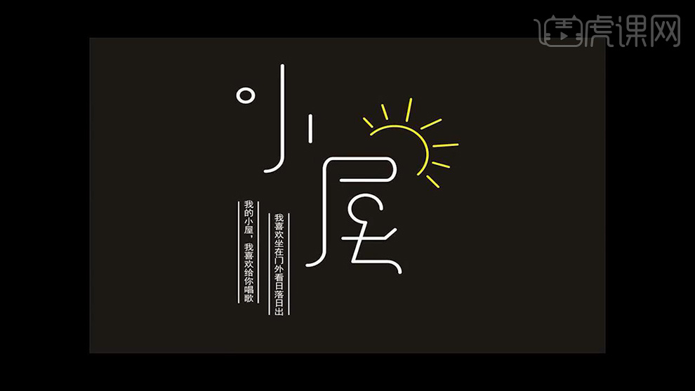 2、【矩形东西-绘制取文字等大的外形】【填充灰色-下移一层】然后调整【文字的颜色】,同样【曲线东西-绘制摆布两侧的笔画】。打开【AI-输入小屋-字体黑体】按住【ALT拖动复制一层备用】。9、【删除-屋】的‘口’绘制【圆角矩形】取代,15、【曲排文字东西】然后正在‘左侧’输入‘歌词’【曲线东西-绘制曲线,